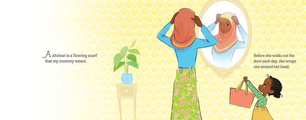 A young girl plays dress up with her mother's headscarves, feeling her mother's love with every one she tries on. Charming and vibrant illustrations showcase the beauty of the diverse and welcoming community in this portrait of a young Muslim American girl's life.